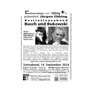 Genießen Sie die REZITATIONSABENDE mit Jürgen Ebbing, im Kunstforum Belziger 1 e.V..